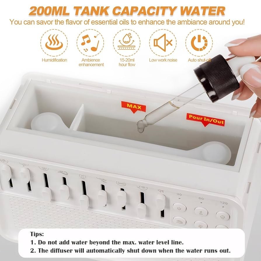 ترکیب صداهای طبیعت، رطوبتدهی، نور ملایم و موسیقی آرامشبخش — همه در یک دستگاه زیبا و کاربردی!