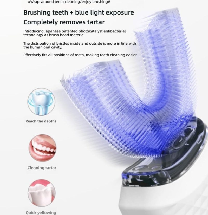 مسواک برقی اولتراسونیک و هوشمند U-شکل مدلمسواک MY-116 با طراحی U-شکل و فناوری اولتراسونیک، راهکاری مدرن برای پاکسازی سریع و کامل دندانها است. این مدل با ارتعاشات بالا و امکان پوشش تمام سطحهای دندانی، تجربهای متفاوت از مسواک زدن ارائه میدهد و مناسب کاربرانی است که به دنبال کارایی و سهولت استفاده هستند.ویژگیهای کلیدیطراحی U-شکل برای پوشش همزمان سطوح داخلی و بیرونی دندانفناوری اولتراسونیک با ارتعاشات بسیار بالا برای جرمزدایی موثربدون نیاز به حرکت زیاد؛ کافی است دهان را داخل دهانه U قرار دهیدچند حالت پاکسازی: تمیزکننده عمیق، ماساژ لثه، حساس و غیرهبدنه سبک و ارگونومیک با طراحی دوار یا قابل نگهداری آسانضدآب (استاندارد IP) برای شستوشوی آسان سر مسواکباتری قابل شارژ از طریق درگاه USB-Cنمایشگر LED وضعیت باتری